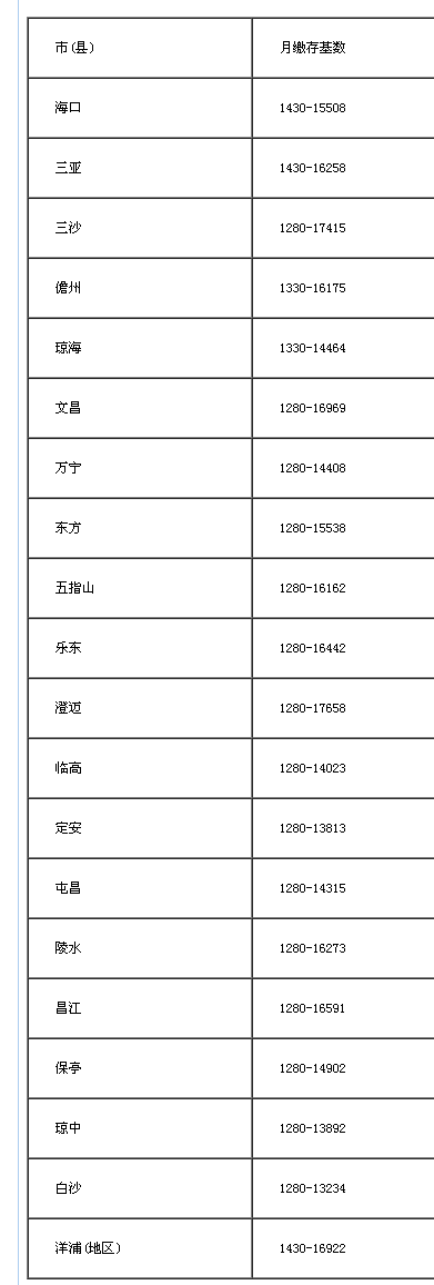 海南五项安全缴数上调