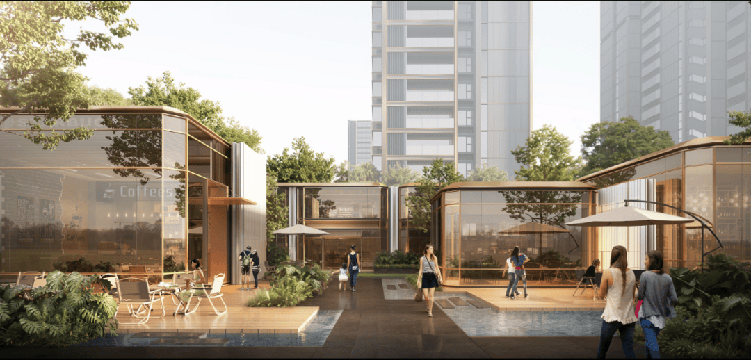 将贸易街区、购物核心、地标办公、轨交坐点取天然公园融合。华润置地邀请了打制前滩太古里的5+Design做为设想师,